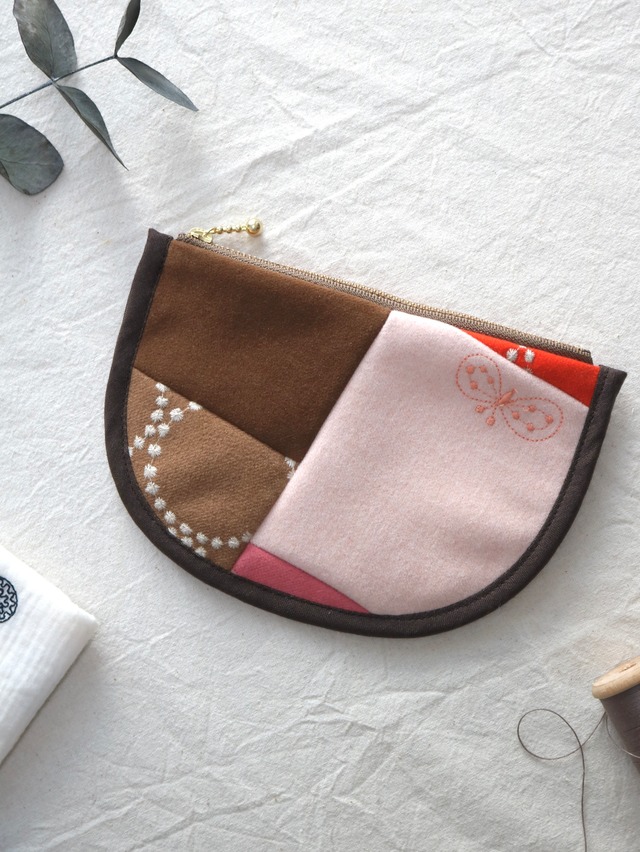 【1点もの】ミナペルホネンdop生地使用|パッチワークミニポーチ(エッジラインデザイン) warm①
