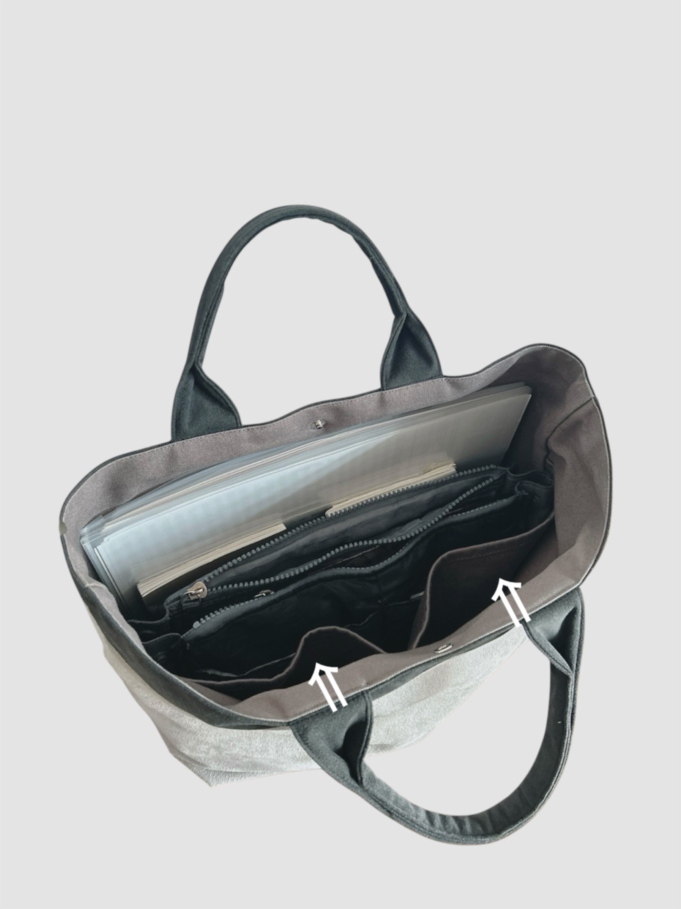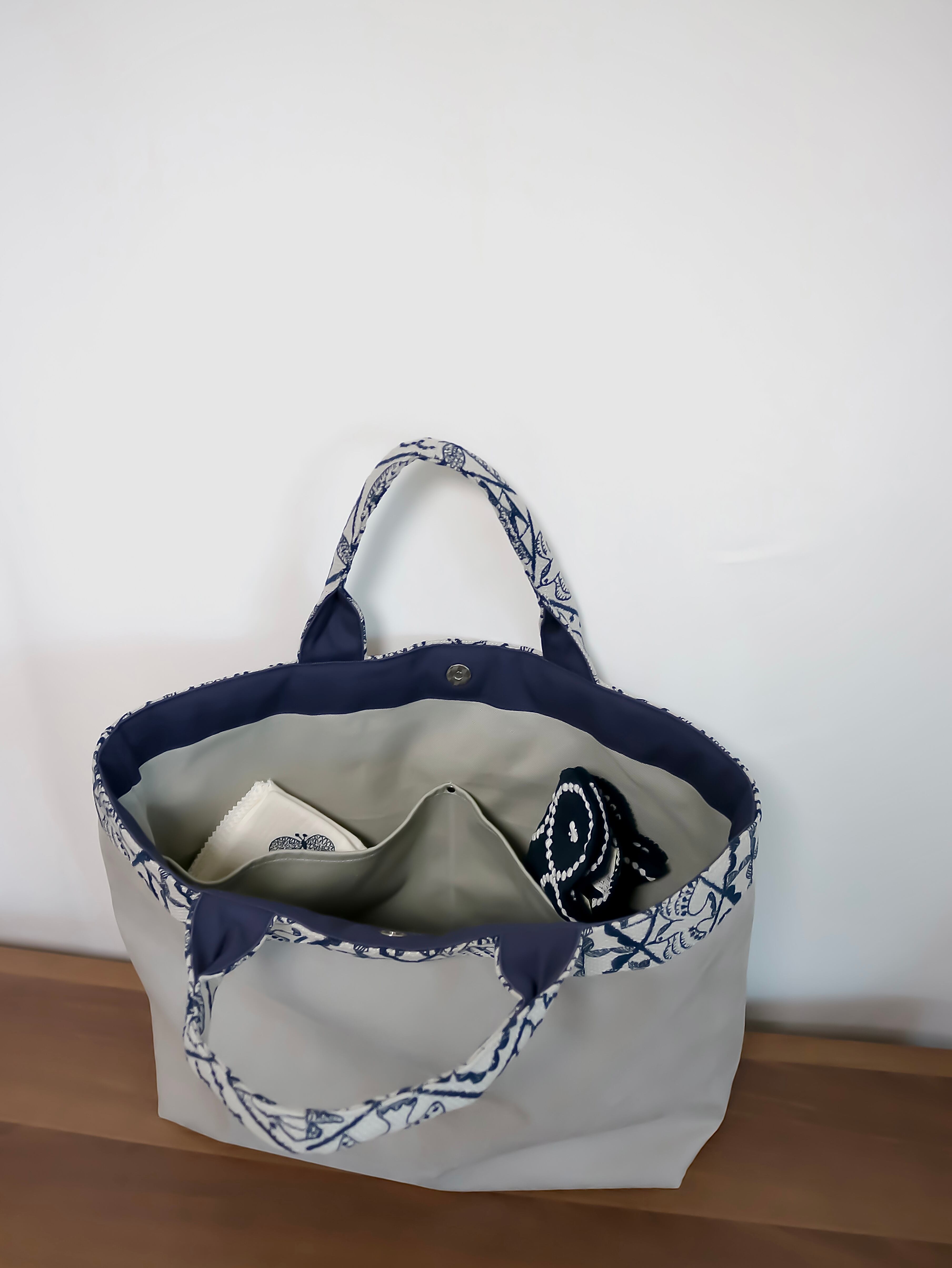 接着芯を貼らない代わりに、バッグinバッグを使うことで自立するバッグに
