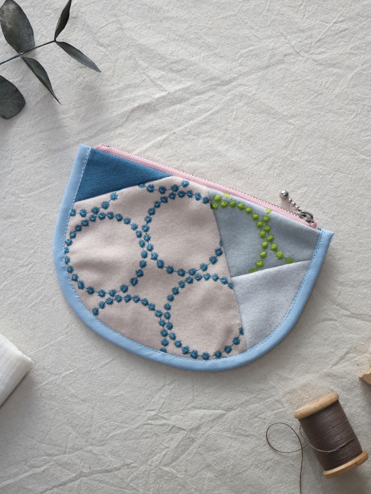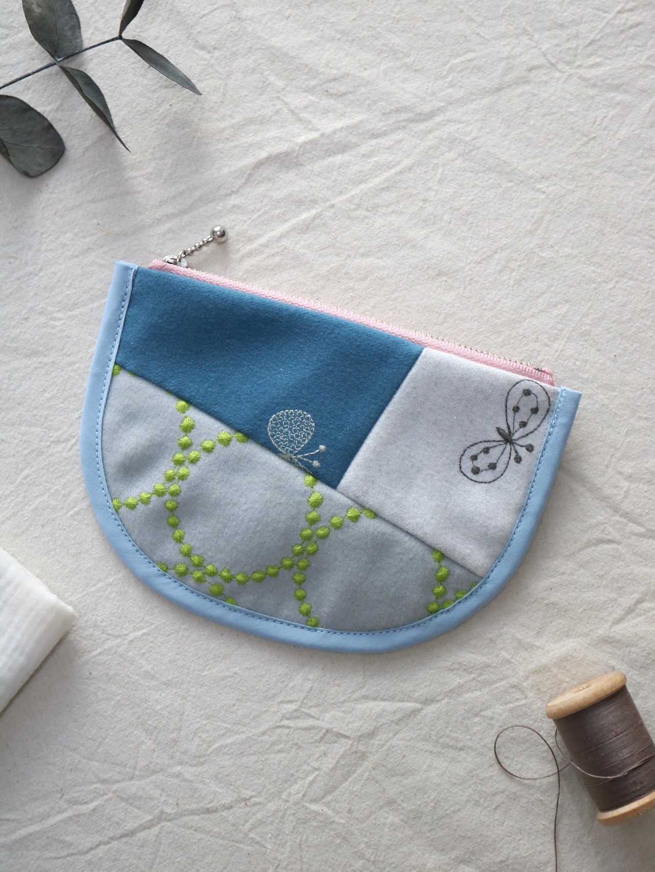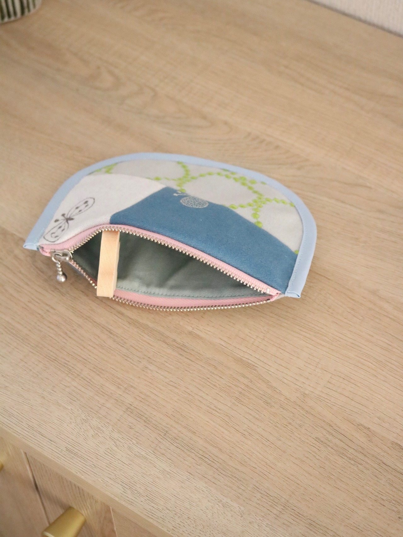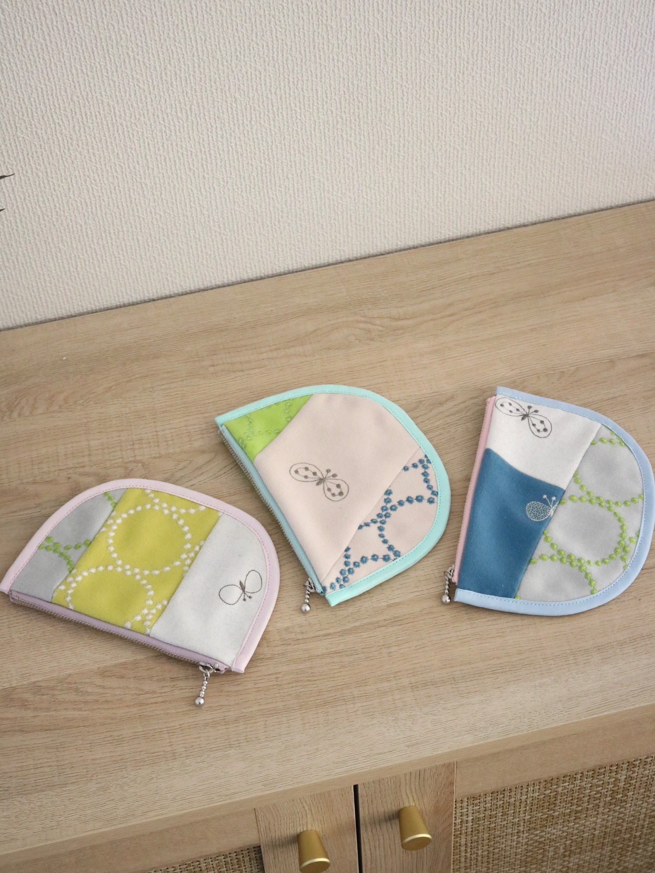 【1点もの】ミナペルホネンdop生地使用|パッチワークミニポーチ(エッジラインデザイン) light②