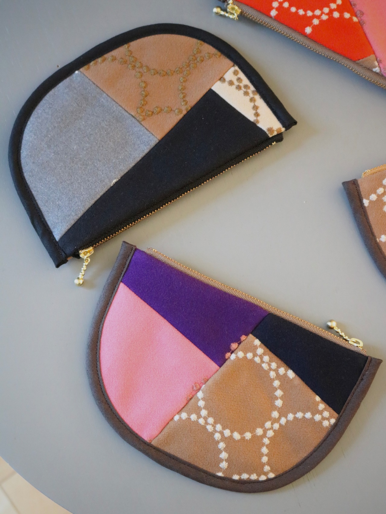 【1点もの】ミナペルホネンdop生地使用|パッチワークミニポーチ(エッジラインデザイン) warm①