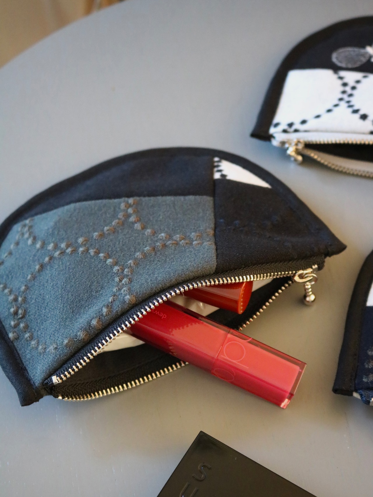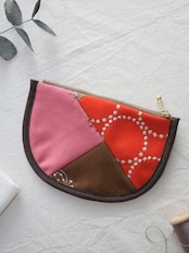 【1点もの】ミナペルホネンdop生地使用|パッチワークミニポーチ(エッジラインデザイン) warm③