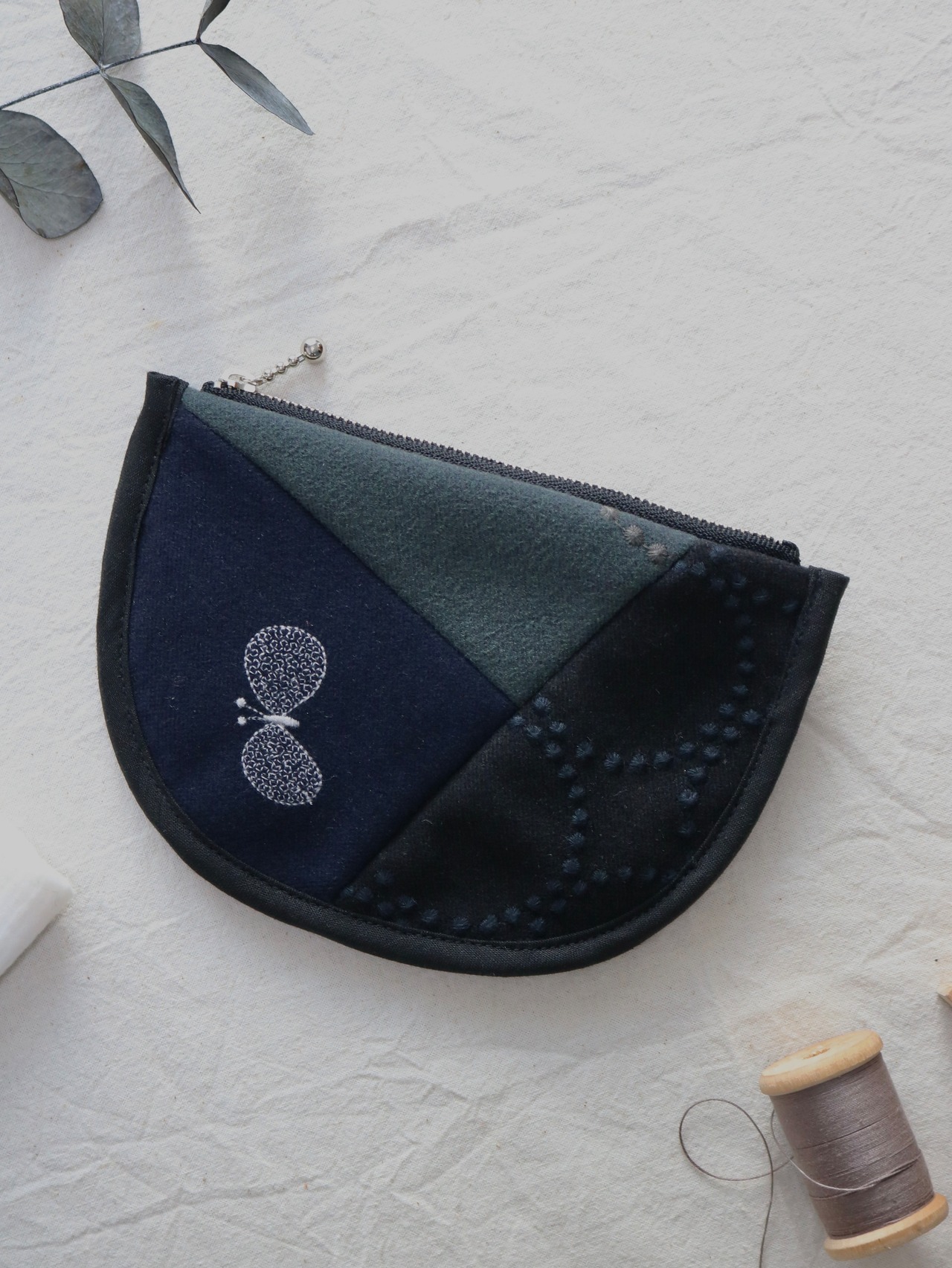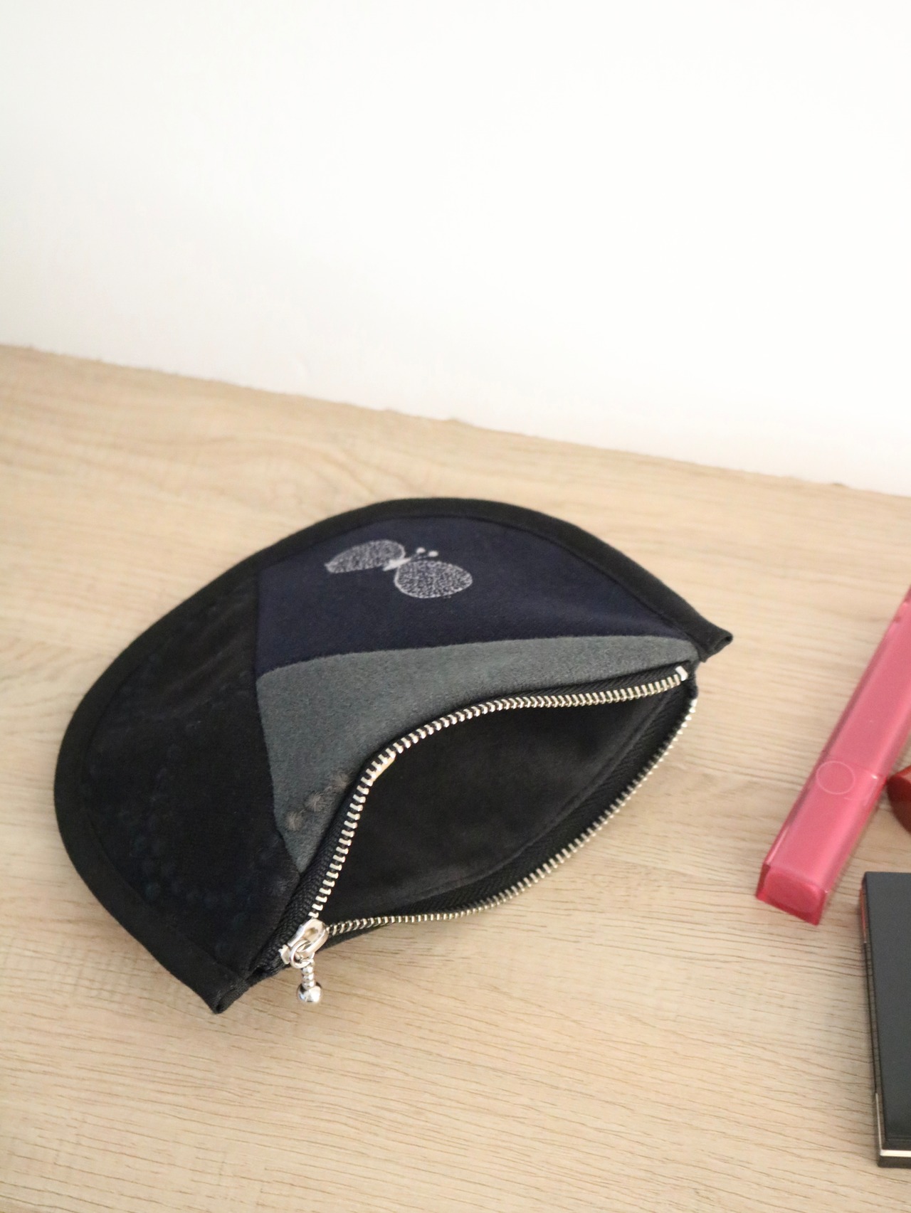 【1点もの】ミナペルホネンdop生地使用|パッチワークミニポーチ(エッジラインデザイン) deep①