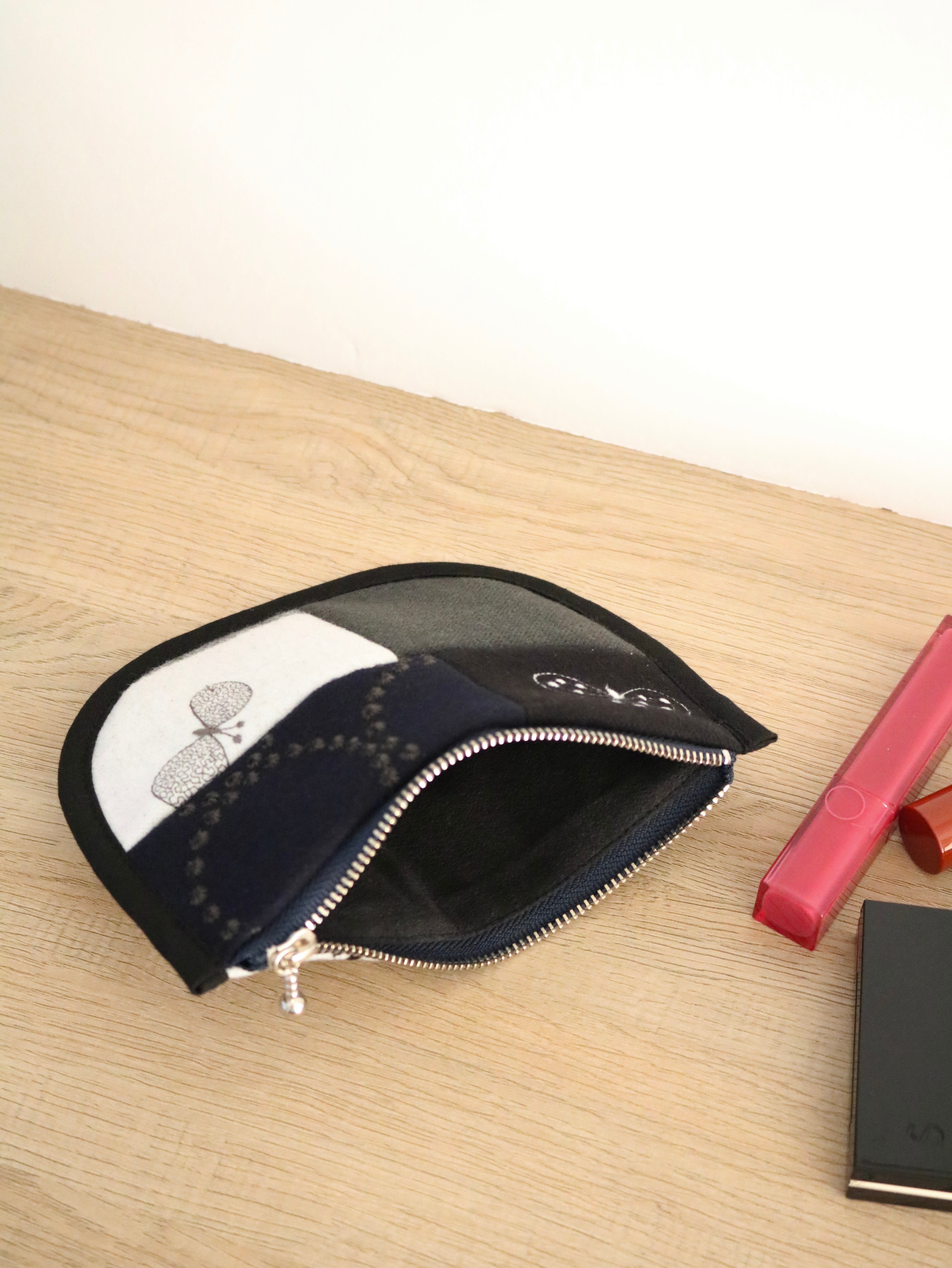 【1点もの】ミナペルホネンdop生地使用|パッチワークミニポーチ(エッジラインデザイン) deep②