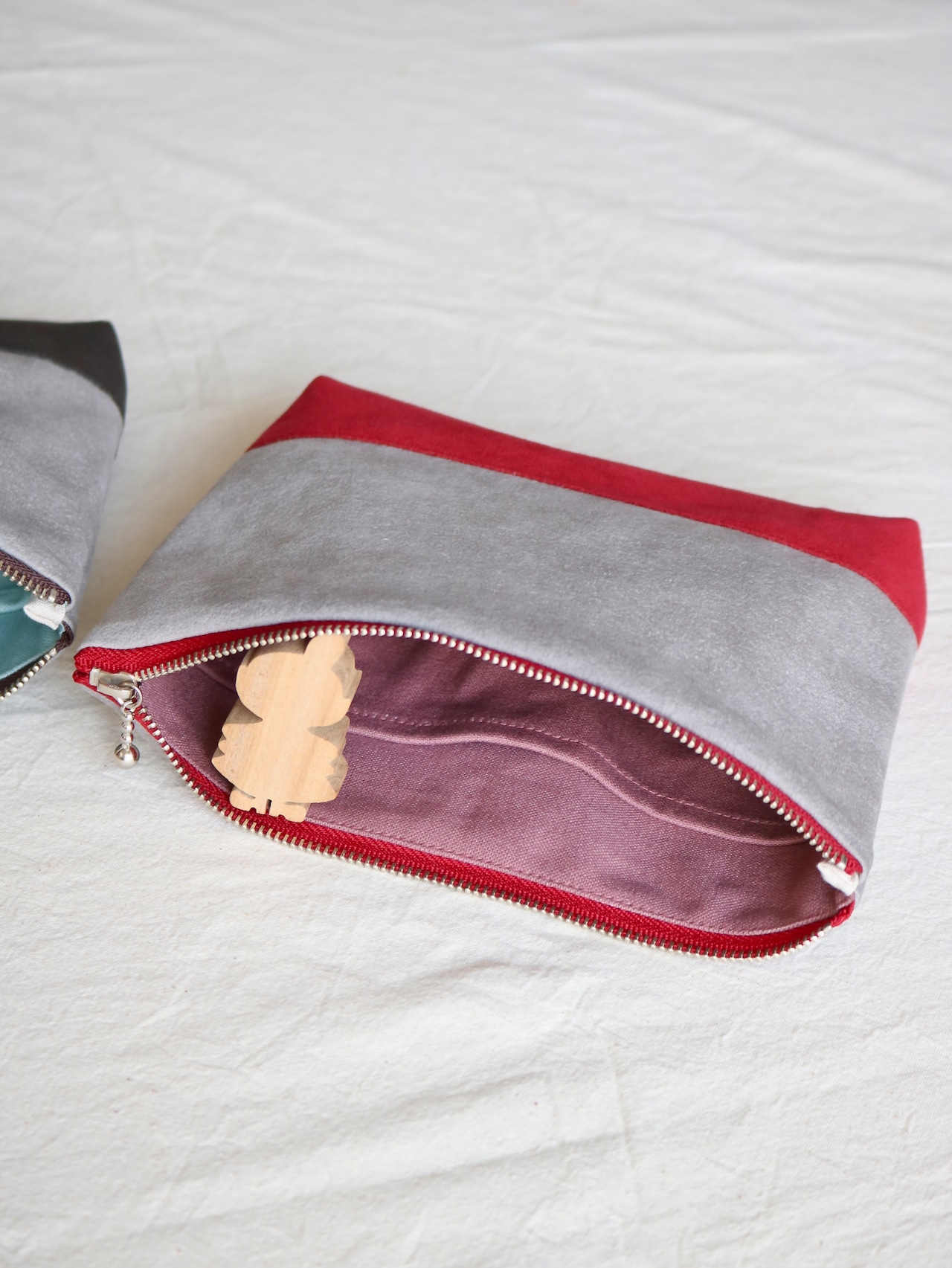 アルカンターラのバイカラー仕切りポーチ ワインレッド(単品)