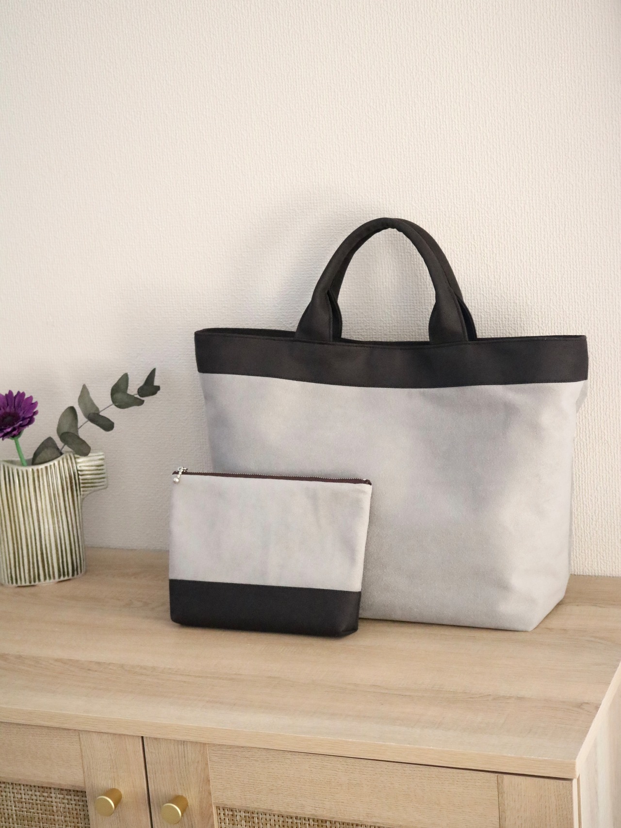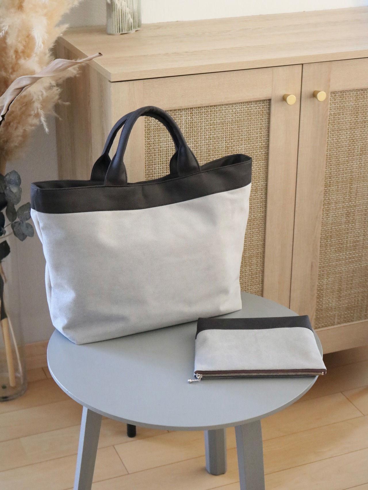 ライトグレー × ビターブラウンのバイカラーで大人可愛い雰囲気
