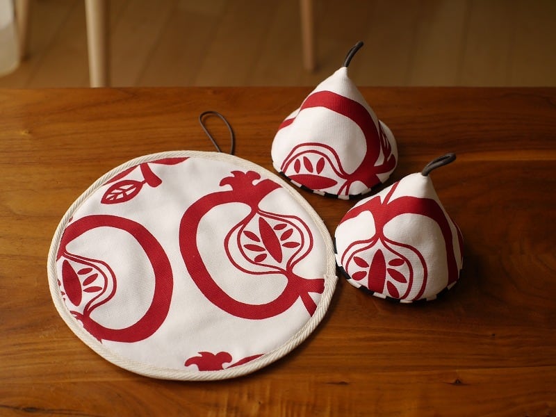 ポットマット、三角鍋つかみともに、キッチンに飾っておくだけでも可愛いです。